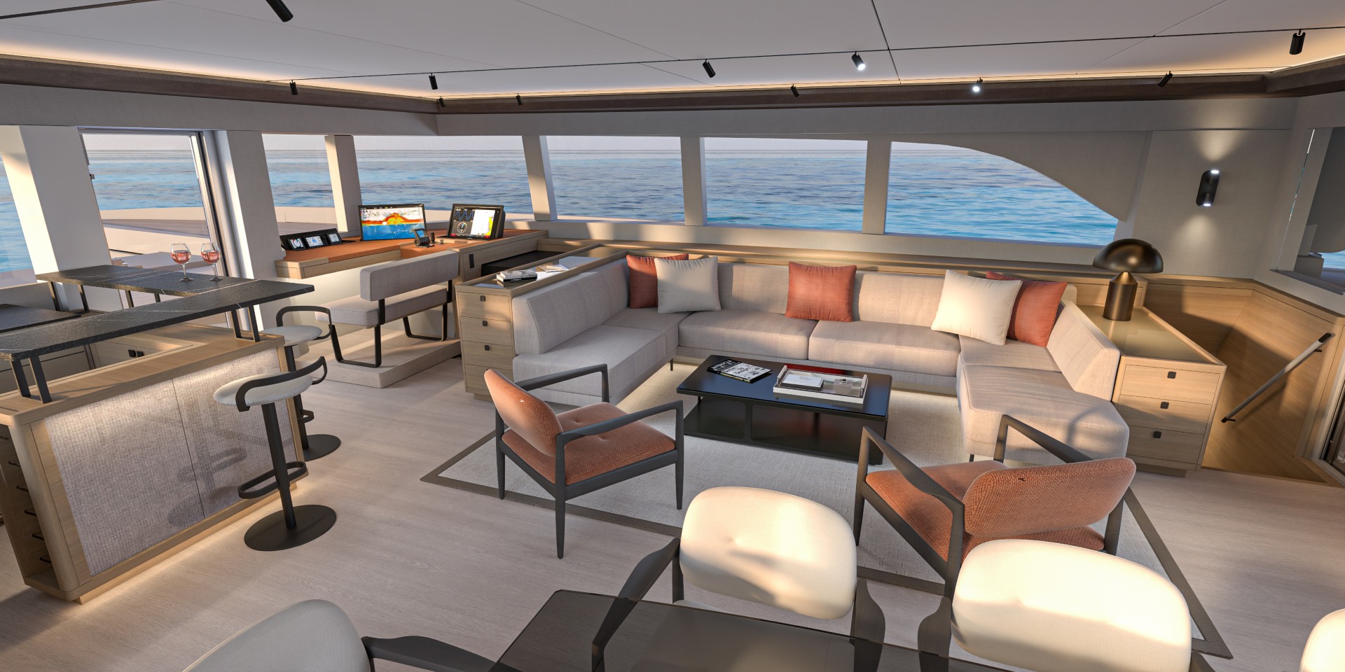 Cada detalle está diseñado para ser personalizable. El EIGHTY 3 encarna el espíritu del yate a motor con la personalidad Lagoon, gracias a las opciones personalizadas en cuanto a mobiliario, tapicería y accesorios.