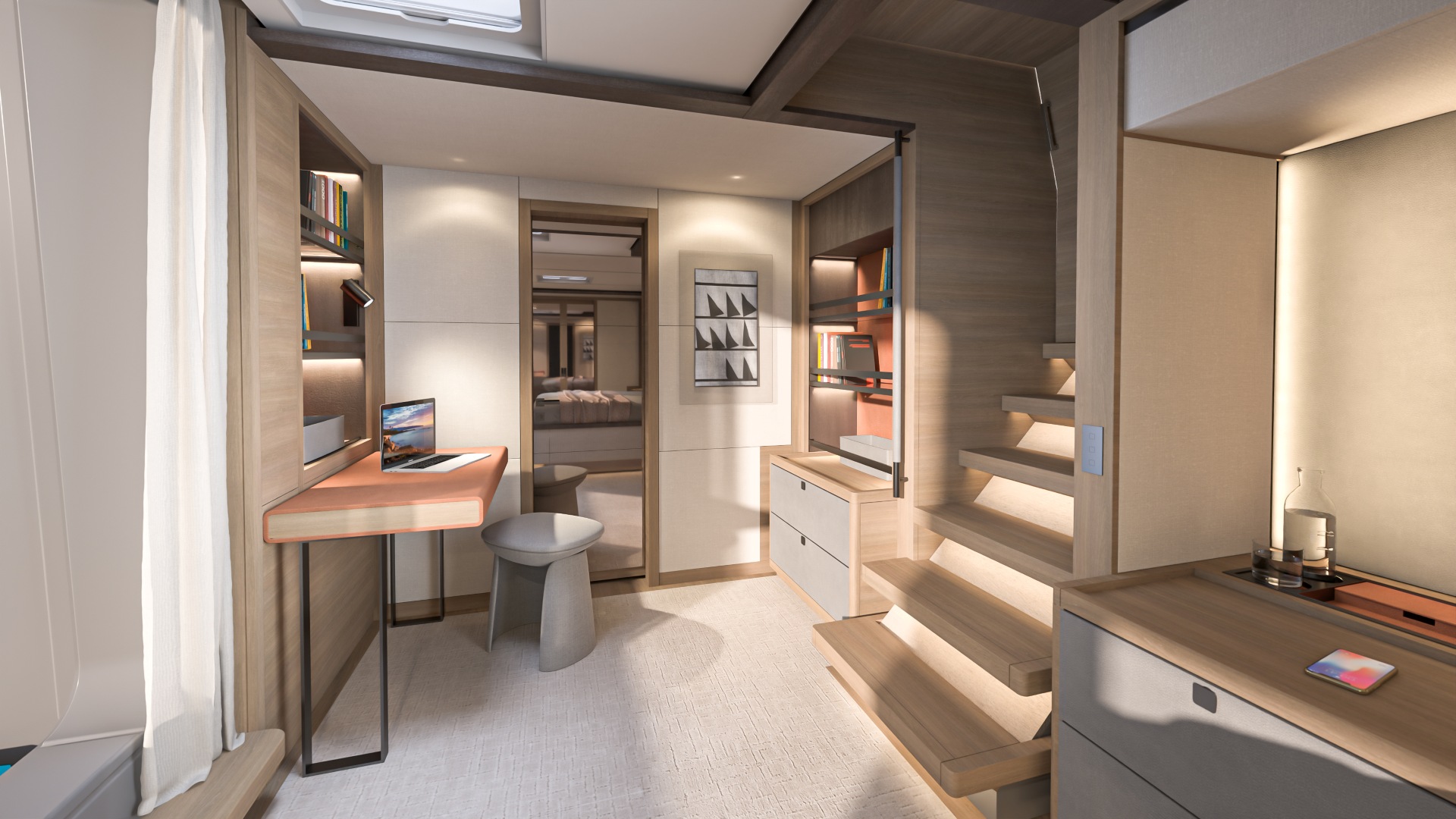 Inspirado en los códigos arquitectónicos contemporáneos, cada espacio de vida a bordo le invita a disfrutar plenamente de la luz y de las impresionantes vistas a 360° sobre el océano.